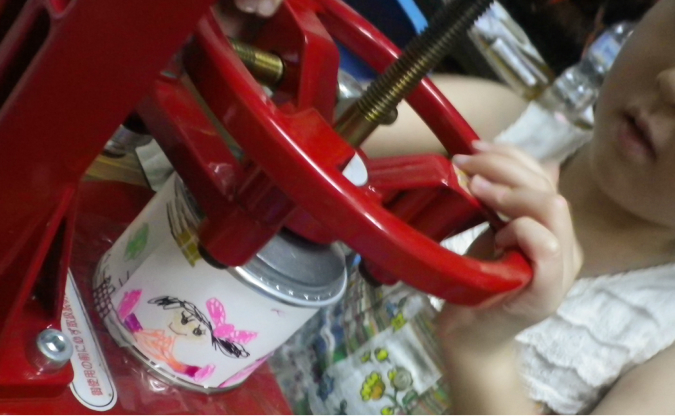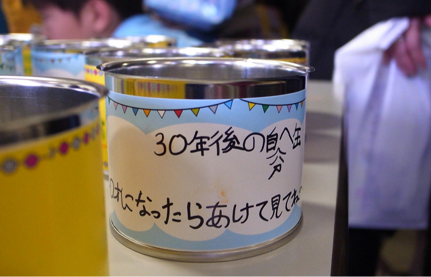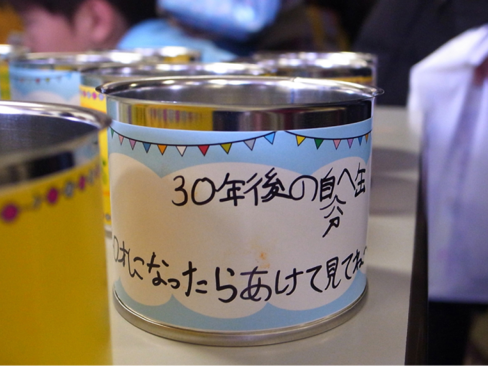 手回し製缶機を使って缶詰を作るワークショップです。タイムカプセルに見立てて、〇年後の自分や家族にお手紙を書いたりその時大切にしているものを入れたりさまざまです。