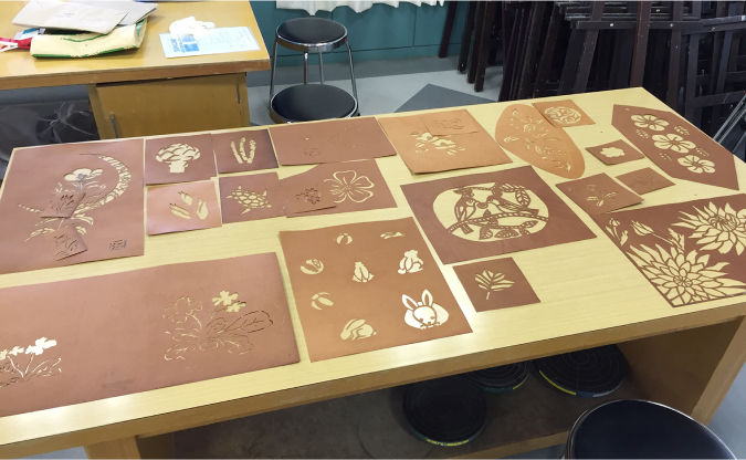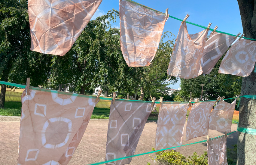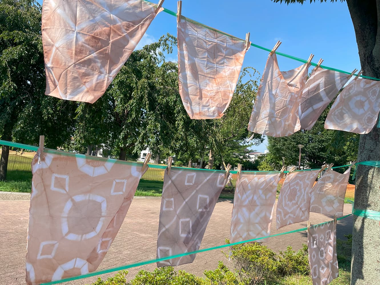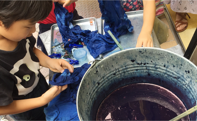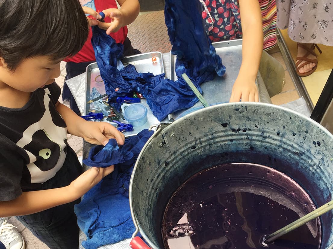 身の回りにある植物で染める草木染め、夏に人気の藍染め、絞り染めや型を彫って染める型染めなどを行っています。